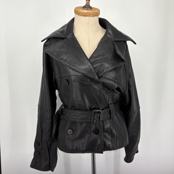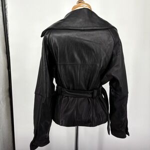 Express Avenue De L'opera Leather Belted Moto Jacket Thinsulate Y2K Black S