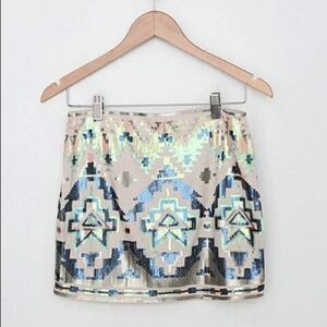 Express Aztec Print Sequin Mini Skirt, Size M