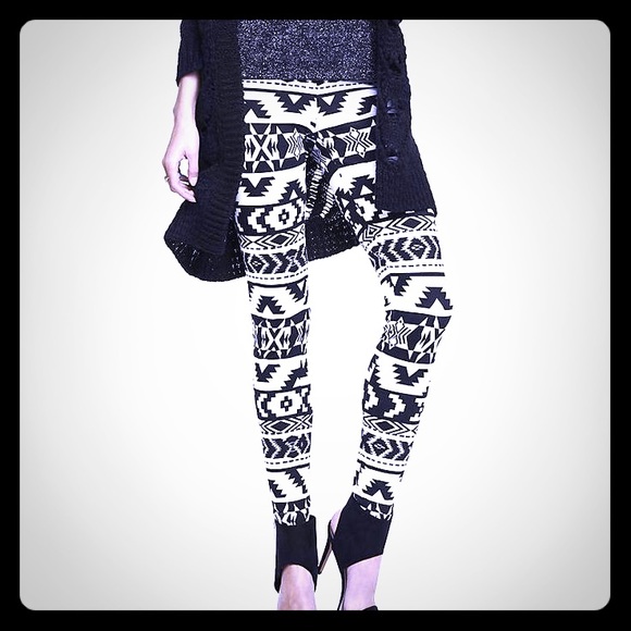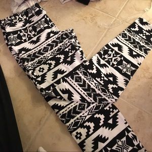 Express stretch pants. Size medium. Black and white Aztec pants. Some fuzzies near thigh area. No stains. Lightly used