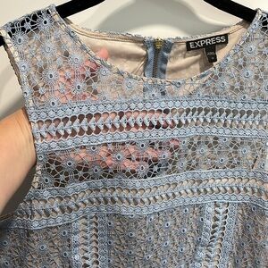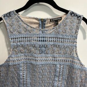 Express Baby Blue Tiered Ruffle Lace Sleeveless Dress EUC