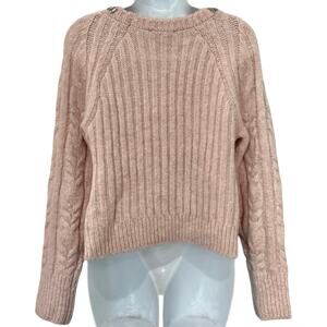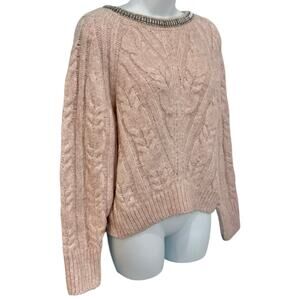 Express Baby Pink Chunky Knit Jeweled Collar Crew Neck Sweater size XS Glam