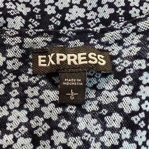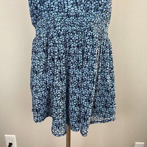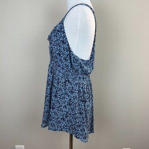 Express Babydoll Tank Top L Blue Navy Mesh Floral Ruffle V-Neck Smocked Waist Women's Large