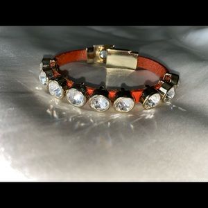 Express crystal bracelet with leather band with magnet clutch