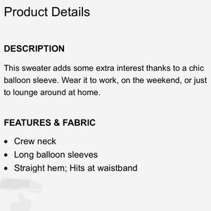This sweater adds some extra interest thanks to a chic balloon sleeve. Wear it to work, on the weekend, or just to lounge around at home. It’s size XS but fits more like S.