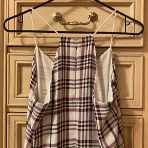 Express Barcelona Cami Tank Top. Razor back with keyhole cut out. Size M, high low, V neck. Black, purple and white