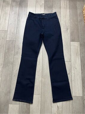 Express wide leg jeans in deep navy. Stretch fabric for comfortable wear. Clean, classic silhouette with a subtle flare. Easy to pair with casual or dressy tops.The Tag Size 8 Short But Runs Regular Length Excellent Condition