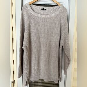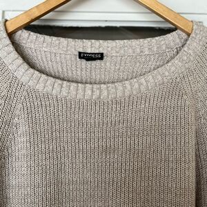 Express beige long sleeved crew neck sweater, side slits, comfortable and cute, size Large. Worn once.