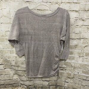 Express Womens XS Beige Metallic Weave Ruched Side Dolman Sleeve Knit Top in good used condition. No stains, tears or rips.