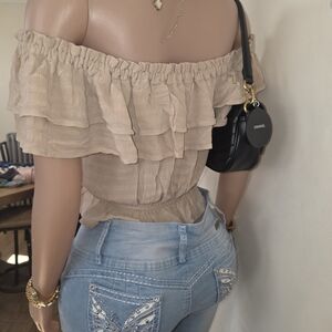 ☆Express Beige Off-Shoulder Ruffle Blouse☆