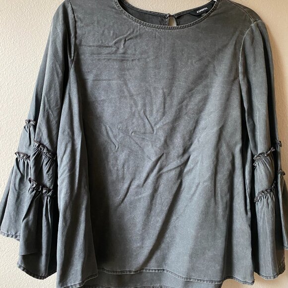Express. Bell-Sleeve dress top, size small. 100% lyocell. No stretch. Color: distressed grey.