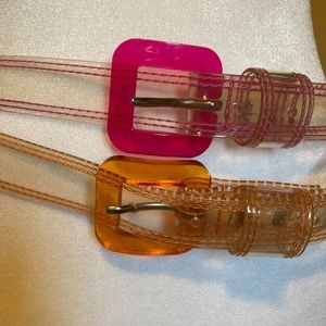 Set of Express clear plastic Belts. 40" L. Good condition. See photos