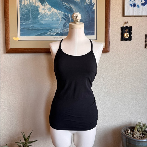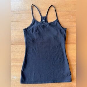 This bra cami features a new racerback silhouette, built in self bra, and a straight hemline. Great basic to have to layer or style as is for any aesthetic.