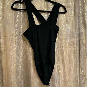 Express Black Asymmetrical Strappy Jersey Knit Smooth Bodysuit XS