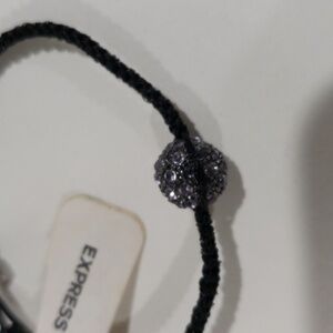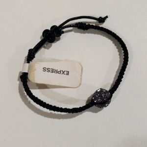 Add a touch of sparkle to your look with this Express black beaded bracelet, featuring a glittering rhinestone-accented bead. The adjustable macrame design ensures a perfect fit, making it an ideal accessory for casual and dressy occasions.