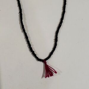 ✨ Express Black Beaded Burgundy 32" Tassel Necklace - Chic & Playful Accessory ✨