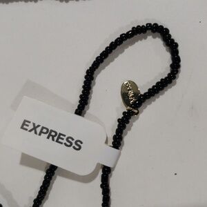 Express beaded necklace, tassel necklace, black beaded jewelry, boho accessories, festival necklace, trendy jewelry