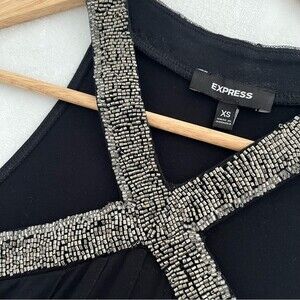 Express Black Beaded Neck Swing Mini Dress, Size XS