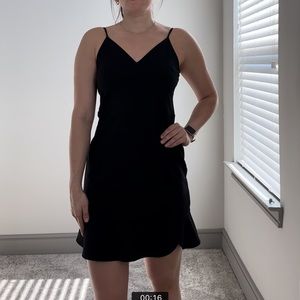 Tulip shaped. Scalloped bottom. Back zipper. Adjustable straps. Never been worn. Fits true to size. In like new condition.
