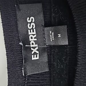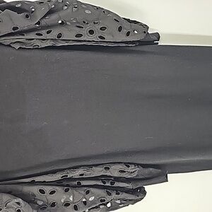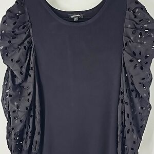 Express Black Bodycon Midi Sweater Dress w Puffed Cutout Scalloped Long Sleeves