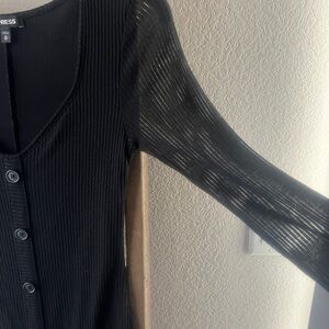 Elegant black button-down dress with a sleek design. Perfect for any occasion.