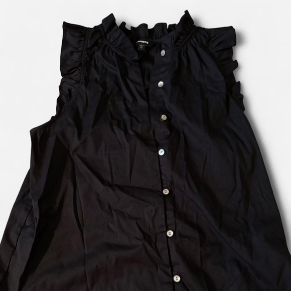 Express Black Button-Down Ruffle Blouse