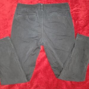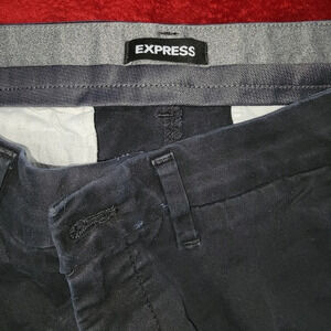 These Express black chinos are crafted from a smooth cotton-blend fabric, offering a sleek and polished look. The straight leg cut provides a comfortable fit, making them ideal for both casual and smart-casual occasions. Their classic design ensures they pair effortlessly with a variety of tops and shoes.
