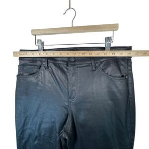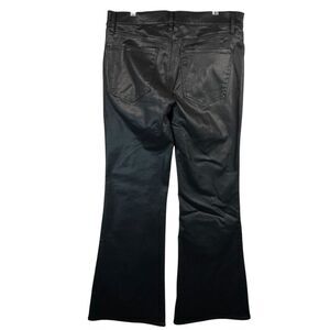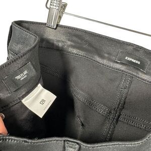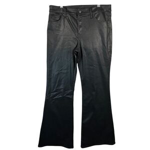 Express Black Coated 70s Flare Pants Stretchy Bootcut Trousers Size 12R Mid Rise
