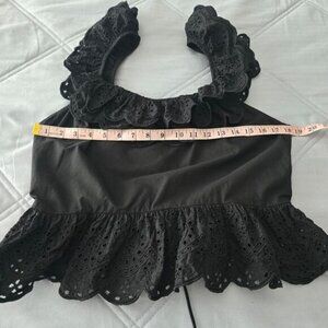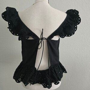 Express Black Cotton Eyelet Lace Ruffle Peplum Top L Open Back Romantic Evening