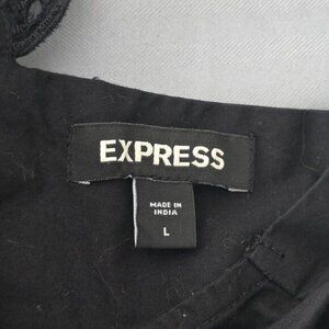 Stunning Express black top in size L. Features delicate eyelet lace and a charming ruffle peplum. The open back adds a touch of romance, perfect for an evening out or special occasion. Made from comfortable cotton. Get ready to turn heads!
