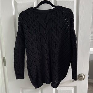 Express Black Crew Neck Sweater with Chunky Cable Knit Design