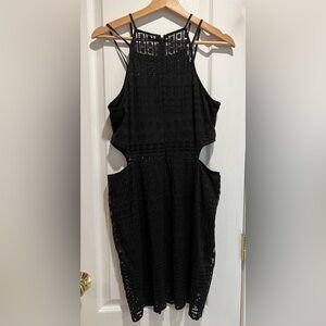Express Black Cutout Lace Bodycon Lined Knee Length Party Dress Womens 12. 18” wide and 34” long. Smoke free home.