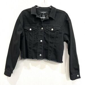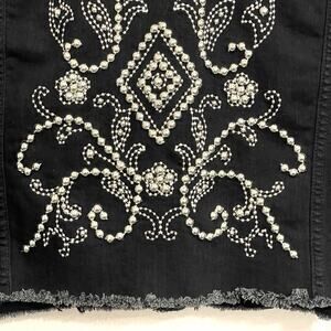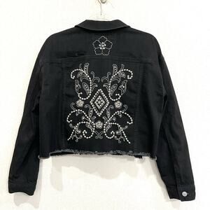 Express Black Denim Jean Jacket w/ Silver Beading & Embroidery & Raw Hem - M/L