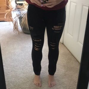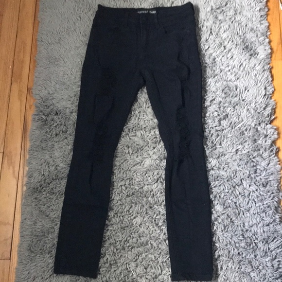 Express Black Distressed Mid Rise Jeans