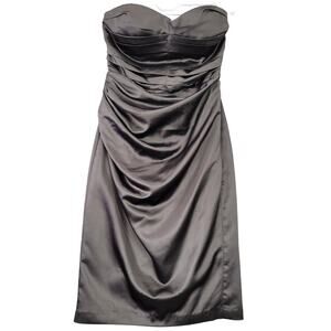Express Women's Dress Midi Size 2 Black Formal Strapless 3% Stretch Aline Lined Zip Lightly Padded Pleated Sweetheart Bustline