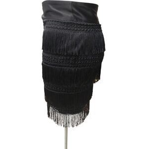 Express Black Event Fringe Skirt Sz 10 . 30 inch waist and 23 inches long. superb condition. no signs of wear. perfect party essential. classy and playful.