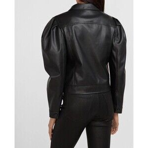 Express Black Faux Leather Cropped Jacket Puff Sleeves Y2K Inspired Large NEW