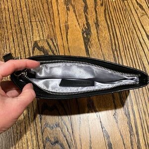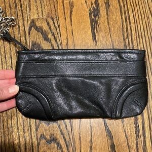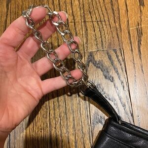 Vegan faux leather metallic coated shiny subtle sparkle silver chain glitzy clutch edgy going out bag