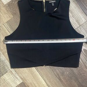 This sleek black tank top from Express features a fitted silhouette and a cropped length, perfect for a modern, minimalist look. The substantial fabric ensures it maintains its shape, while the deep black color adds a touch of elegance