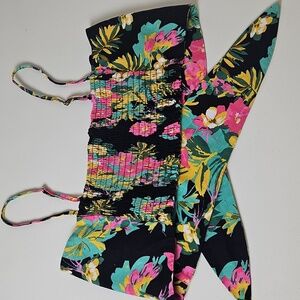 Stylish crop top with vibrant floral design. Features a bow front and adjustable straps. Perfect for summer outings.