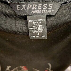 Express Black Floral Midi Skirt Size M Pull-On Red Beige Print USA Made