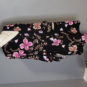 Figure flattering lightweight black floral v-neck 3/4 sleeve mini shift dress from Express in size medium could also be worn with a belt.