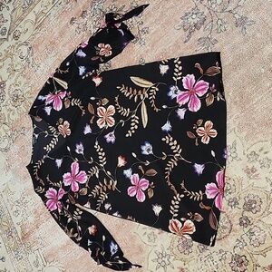 Express Black Floral V-Neck 3/4 Sleeve Shift Mini Dress with Tie Detail - Size M