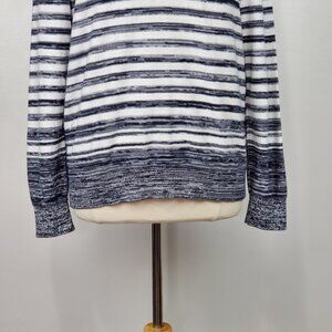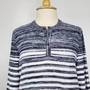 Express Black Gray White Striped Preppy Partial Button Front Sweater Top Size M
