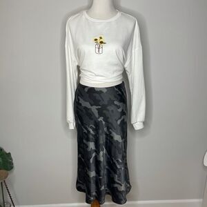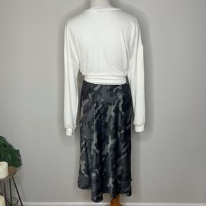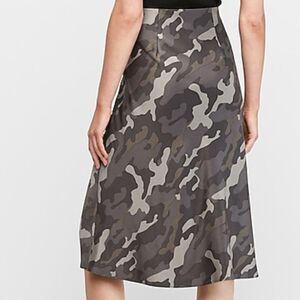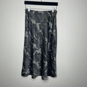 Express- High Waisted Black & Grey Camo Satin Midi Skirt