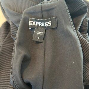 The Express black Halter Bodycon Midi Dress is a stunning choice for a cocktail night out. This sleeveless dress features a chic halter neckline and a form-fitting bodycon style that accentuates your silhouette ,it offers a bold and sophisticated look perfect for making a statement. The midi length adds a touch of elegance, making it a versatile addition to your wardrobe.