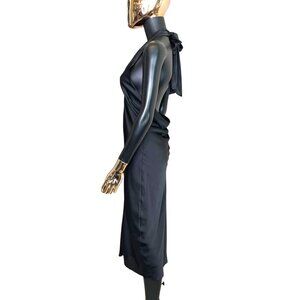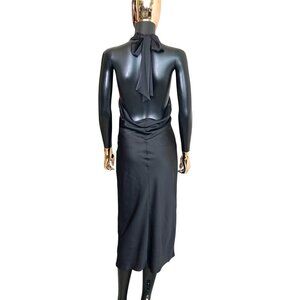 Express Black Halter Cocktail Midi Dress NWT Sateen Slip Style Size Small