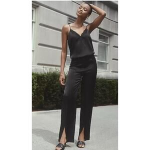 Express Black High Waisted Satin Slit Front Straight Pants Women's 14 R