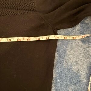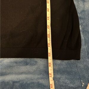 Elegant black knit blouse. Features a scoop neckline and half sleeves. Perfect for any occasion.