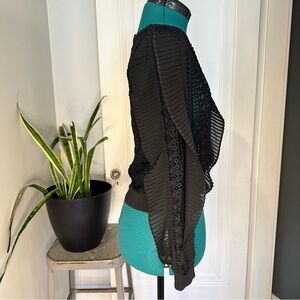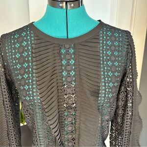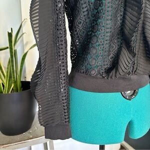 Express Black Lace Blouse with Ruffle Accordion Sleeve xs