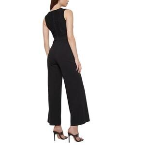 Details: A sleek jumpsuit with a feminine lace faux-wrap bodice and lace embroidery. Style with heels for a wedding, party, or a night out. V-neck; Faux wrap front; Lace embroidered. Sleeveless. Hidden back hook and zip closure. Lace bodice; Lined. Slant front pockets. Style: 07926843